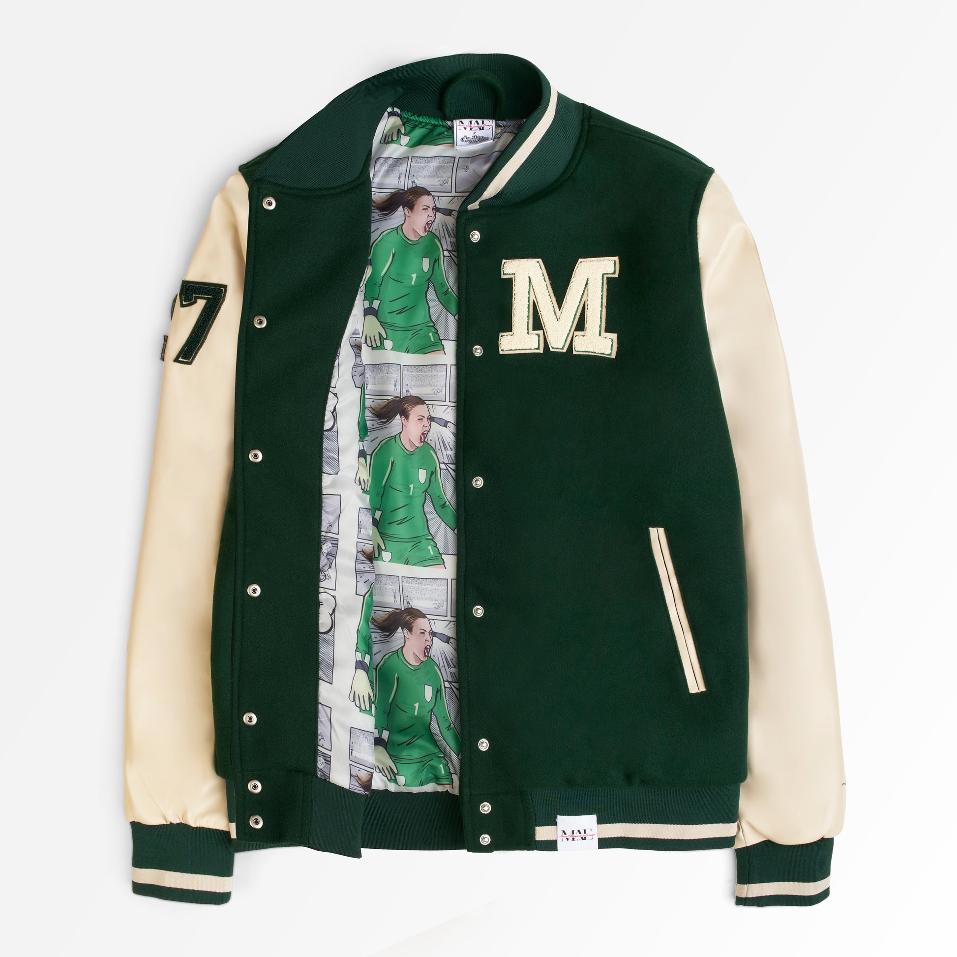 The be unapologetically yourself varsity jacket is a powerful fusion of sport, style and self expression. Inspired by Mary’s unapologetic spirit and her historic World Cup performance, this premium piece is crafted to celebrate bold individuality and iconic moments on the world stage.
